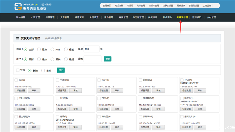 下面是设置方法登录后台 - 关键字管理