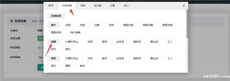 这里选择分类信息的招聘版块,其它关键词自己选择相关版块