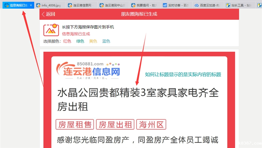如何把海报标题 改为调用实际文章的标题 如下图